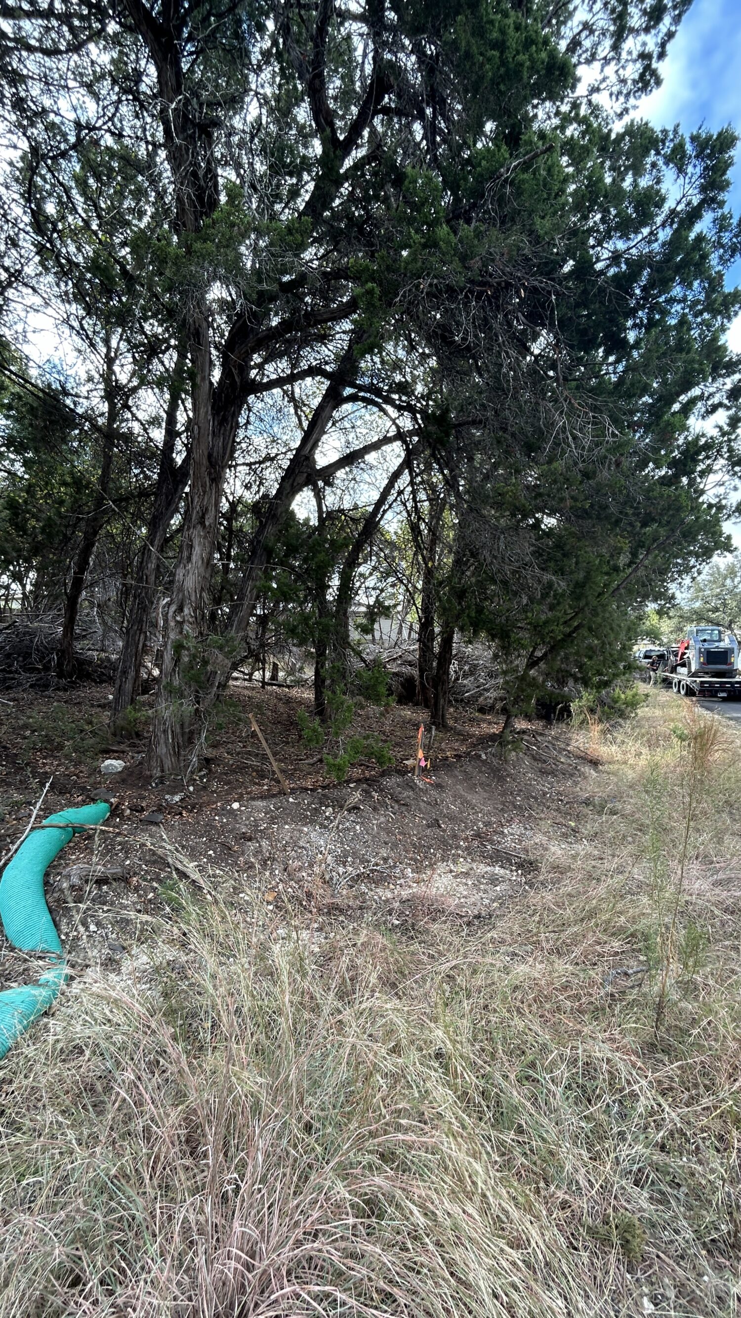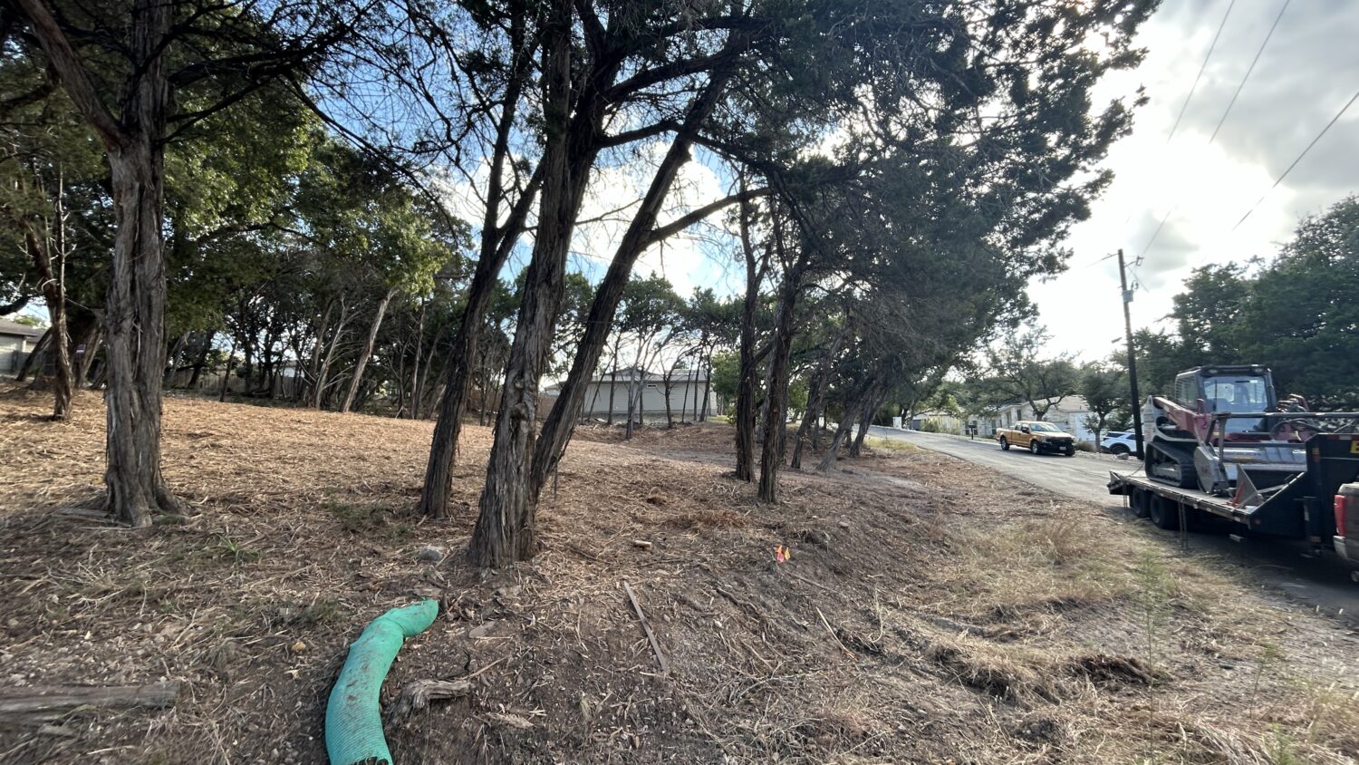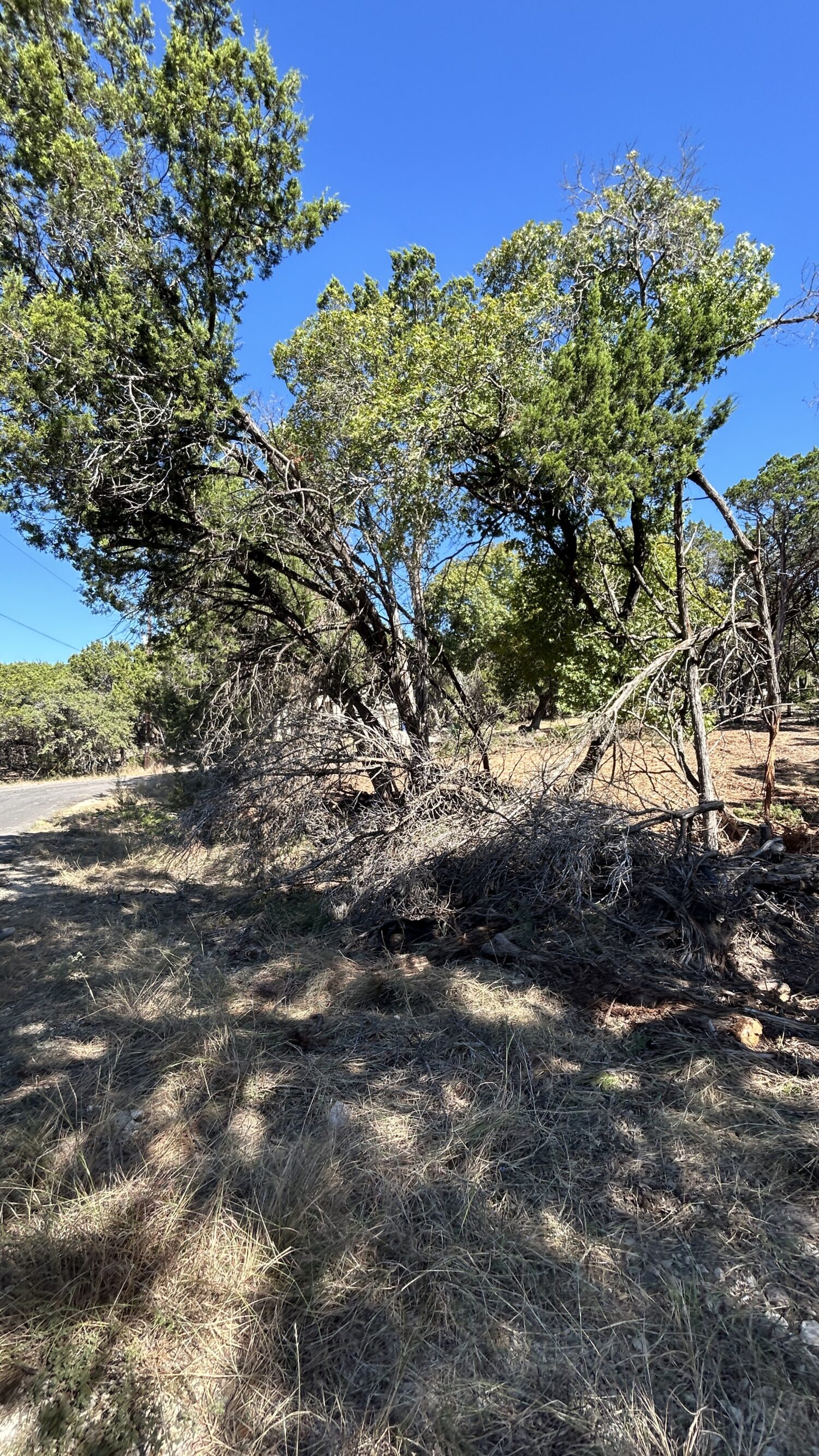 This lot in Lago Vista, Tx was in very poor condition, littered with dead trees, fallen limbs, and debris. Through collaboration with the city of Lago Vista and the property owner, we successfully cleared the site of trash and transformed the dead trees into mulch, much to the satisfaction of both the city and the owner.